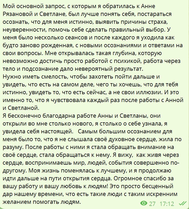 Традиционная медицина не может предложить больше методов лечения, чем у неё есть, поэтому люди фактически остаются один на один со своей болезнью и неутешительными прогнозами на жизнь. Мы оказываем психологическую поддержку людям с любой тяжестью заболевания, потому что наши методы выходят далеко за границы симптоматики и тела.