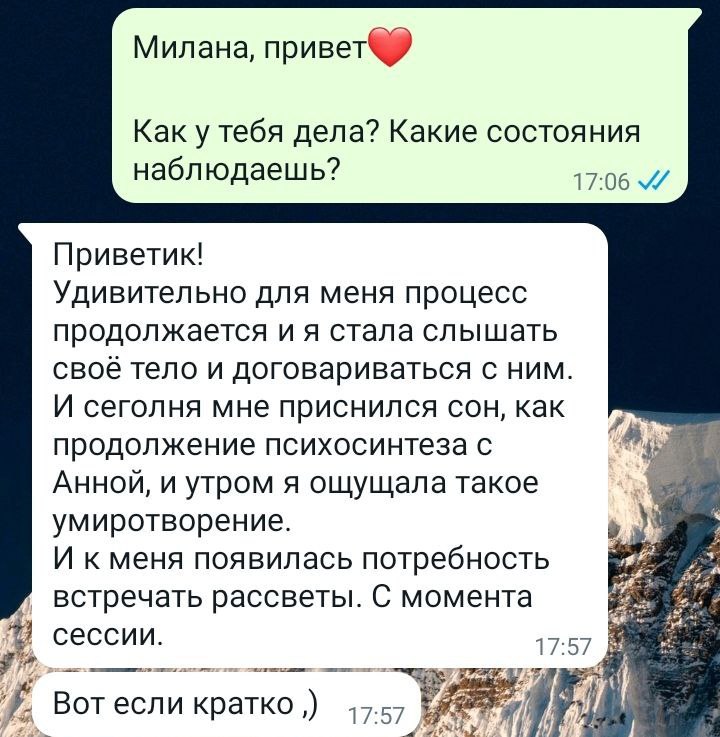 Мы находим «корень болезни» и работаем именно с ним, что влечет за собой перестройку психики и мышления клиента. Это помогает человеку измениться и регулировать свое здоровье.